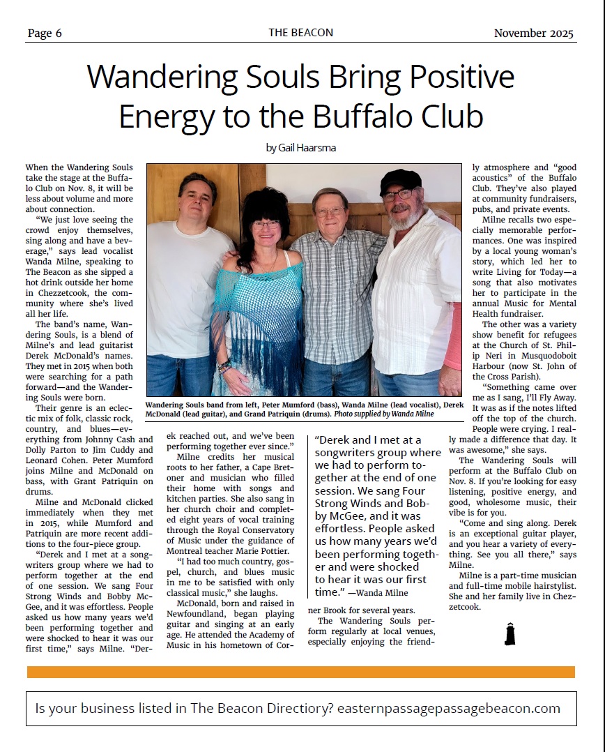 For bookings, contact us by telephone at 902-233-2206, or by email at wandarosemilne@gmail.com.